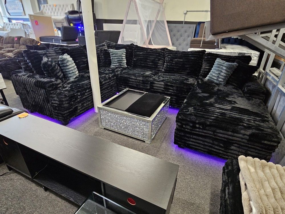 | Characteristics of goods | Brand New Sectional Corduroy Fabric 150 X 101 X 84 Chaise Black & Other Colors AvailableLED Light Adjustable Colors 6 Pillows Solid Wood FrameHigh Quality CushionsSuper Soft$1999 + Tax Elis FurFinance Available3 Months Same As CashOpen 11 to 7 Everyday | ||