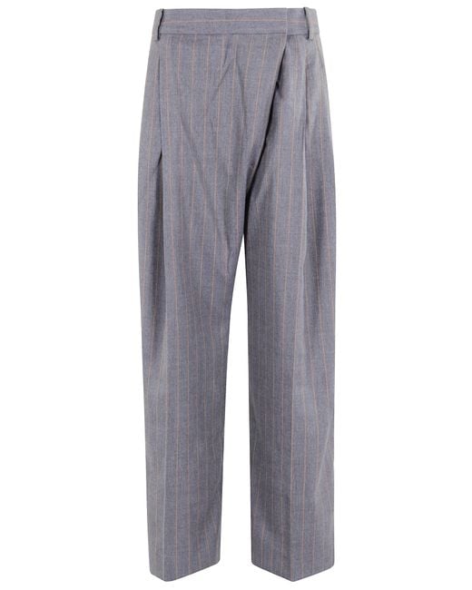 | Characteristics of goods | Product details: Stripe pants - Ganni - gray color - striped print - off-center zipper and hook-and-eye closure - belt loops - side pockets - loose fit Color: gray | ||