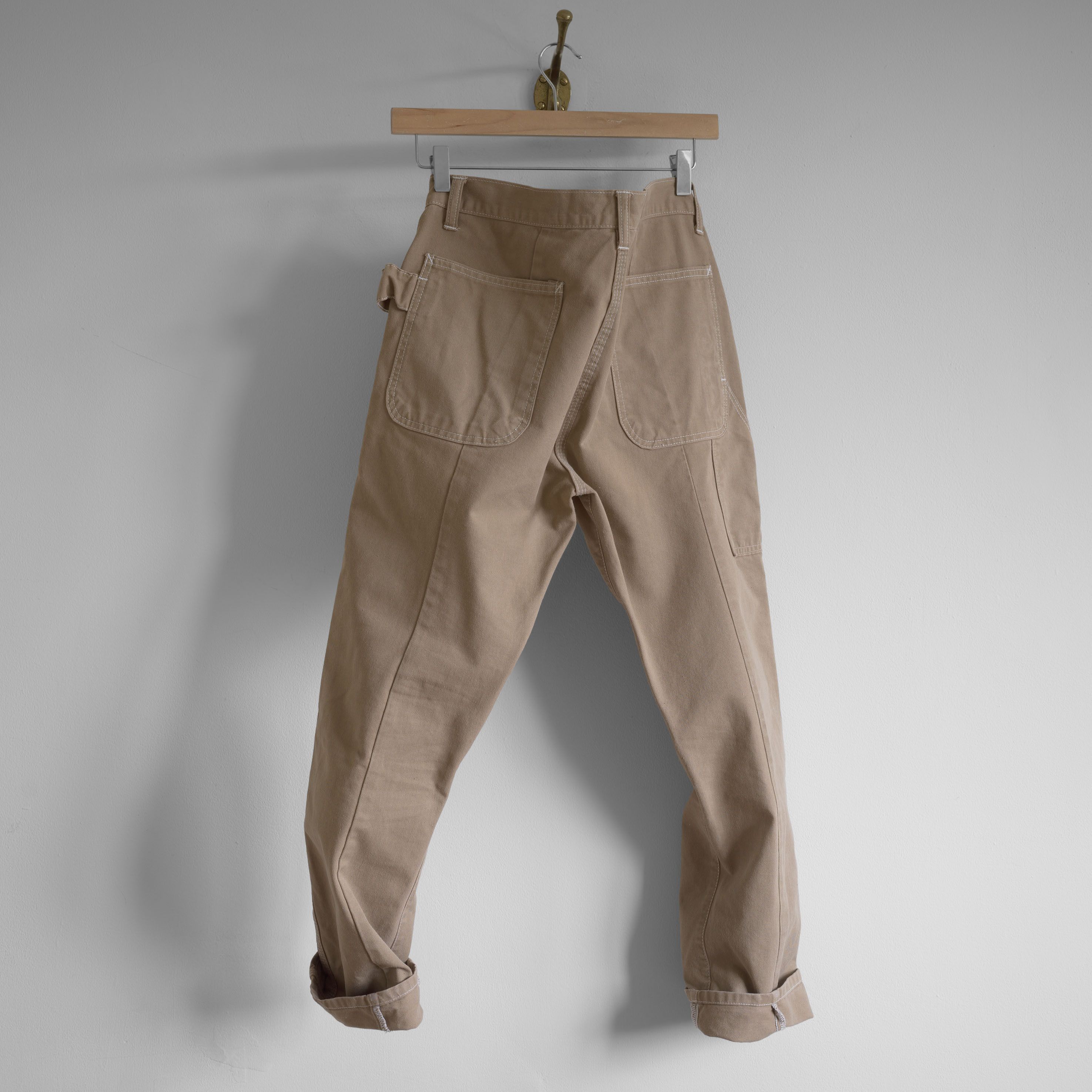 | Characteristics of goods | The trousers are overdyed in the collection's signature greyish beige and feature contrasting white double and triple stitching throughout. Single hammer/tool loop to the left leg and an extra slim leg pocket to the right. Low rise - the waistband moved lower by removing the top of the original trousers rendering the front pockets unusable. Beige The overdye is vibrant and consistent throughout the piece with no fading. Fabric composition 100% cotton. Large patch-type back pockets. Size marked SS. Slim-cut leg. Seller Description Offered here for sale is an unusual pair of trousers re-constructed in Japan by Junya Watanabe Comme des Garcons Man from an existing Pointer Brand trousers for the SS 2006 Reconstructed Workwear collection. Actual measurements taken with the trousers laid flat: waist 43 cm across, inseam 69 cm, front rise 28 cm, overall length/outseam 97 cm, leg opening 19 cm. Excellent pre-owned condition with no aparent faults of any kind. The trousers will best fit a size 32in waist for a snug fit and a size 31in waist for a more relaxed fit. | ||