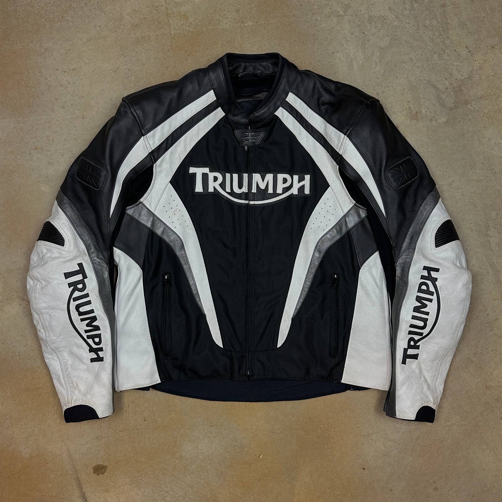 - Outerwear > Leather Jackets > 00s Black White Triumph Leather Motorcycle Riding Jacket U30 Leather Jackets